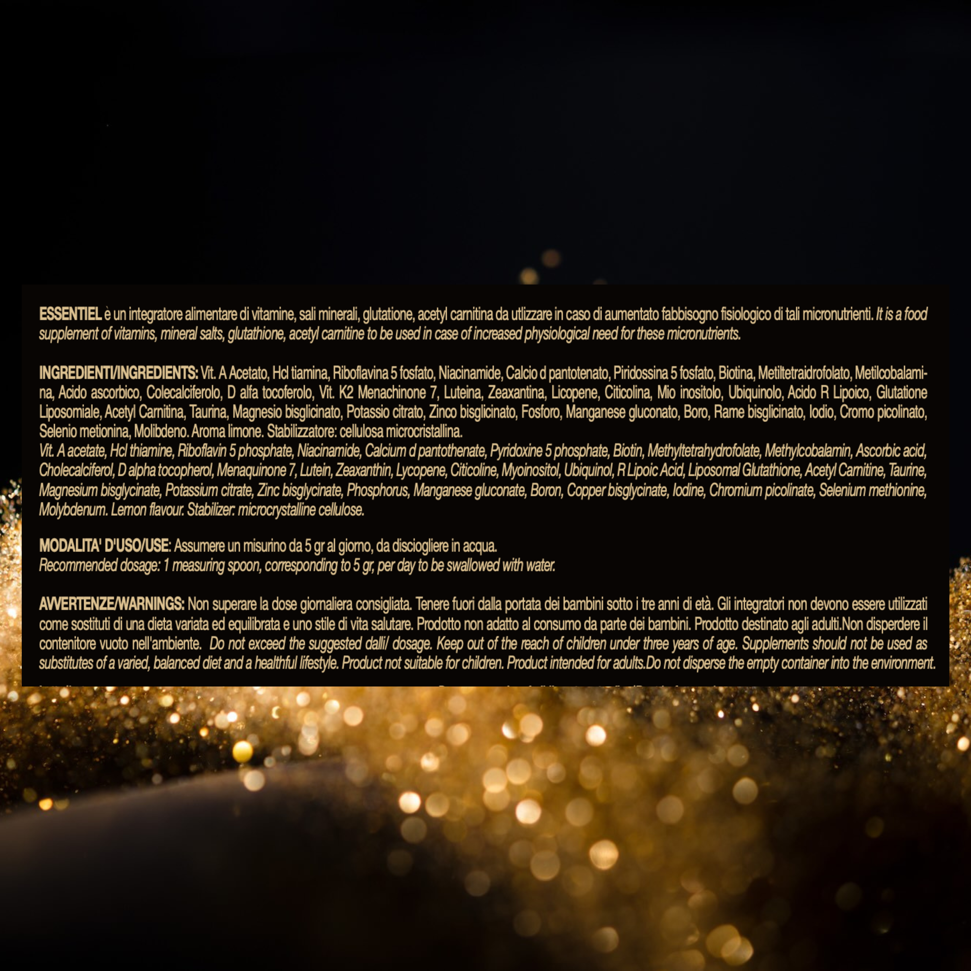 Essentiel unisce vitamine e minerali chelati con attivi liposomiali , così il tuo corpo assorbe subito ciò che conta.