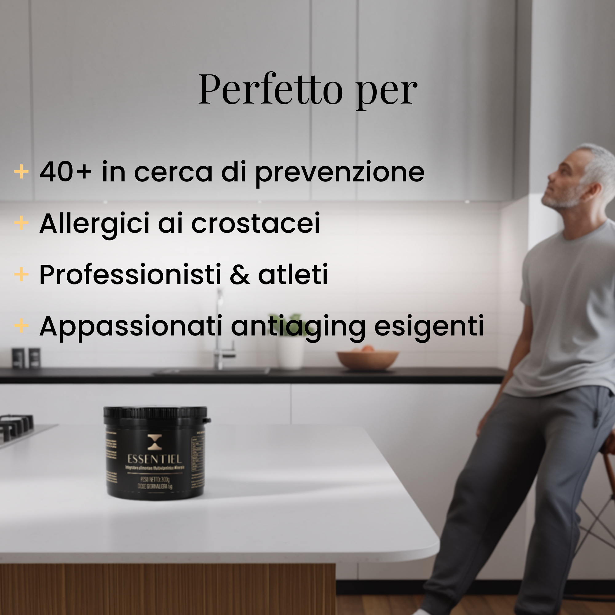 Quando parliamo di longevità non c’è spazio per i dubbi: Essentiel è formulato, prodotto e confezionato per offrirti la massima purezza e tollerabilità, giorno dopo giorno.