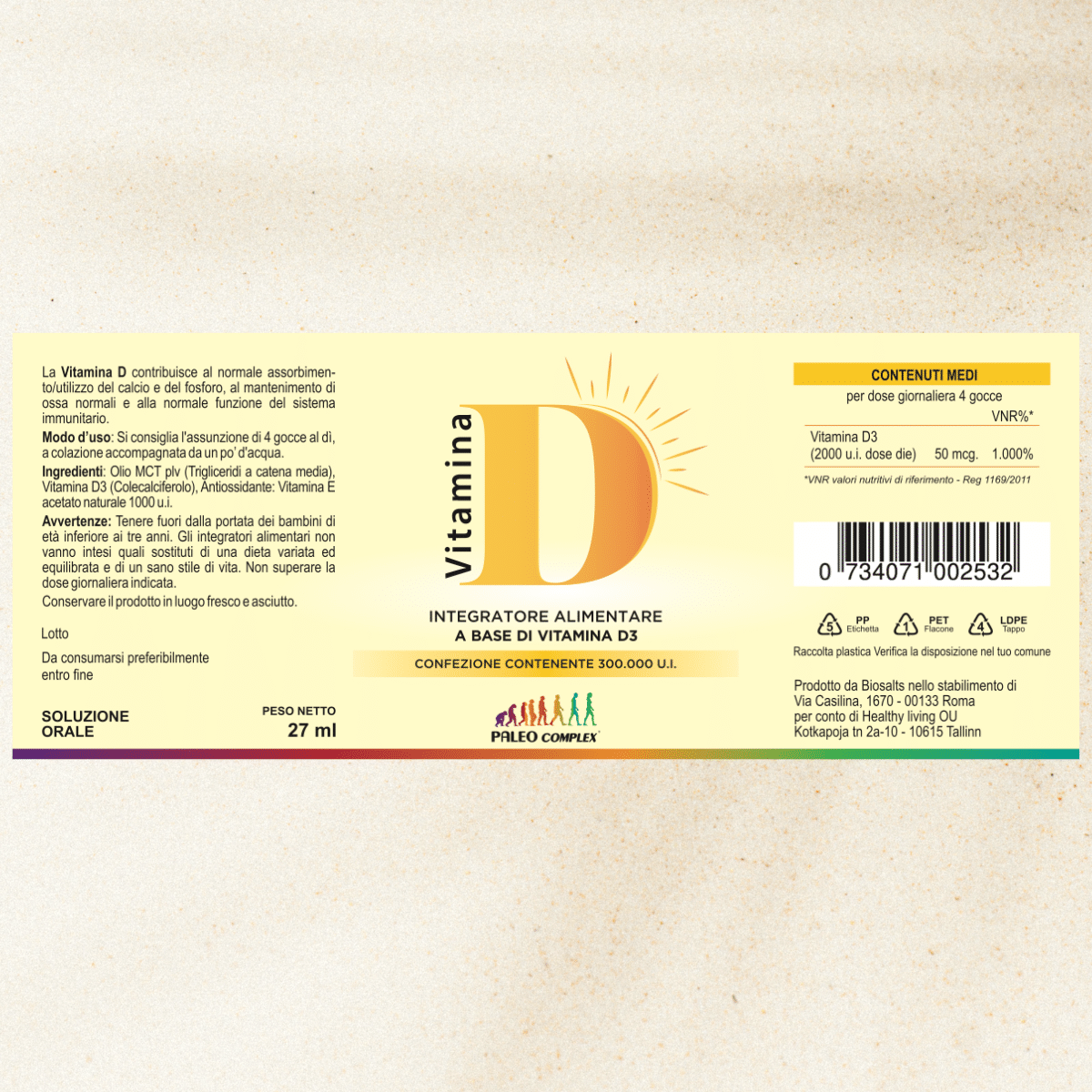 Integratore di vitamina D (colecalciferolo) utile per elevare i suoi livelli in caso di carenza.